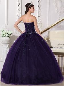 Dark Purple Tulle Dress for Quinceaneras with RhinestoneDark Purple Tulle Dress for Quinceaneras with Rhinestone
