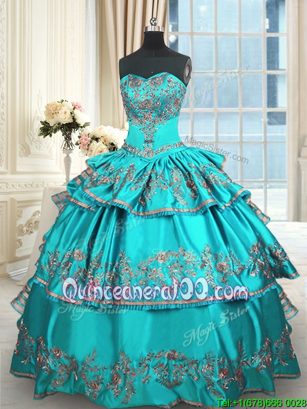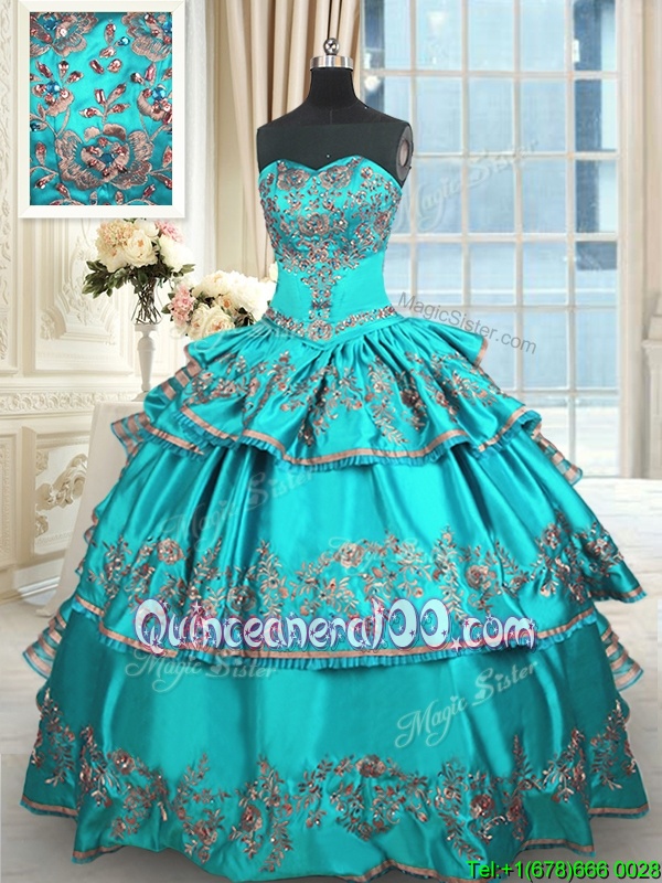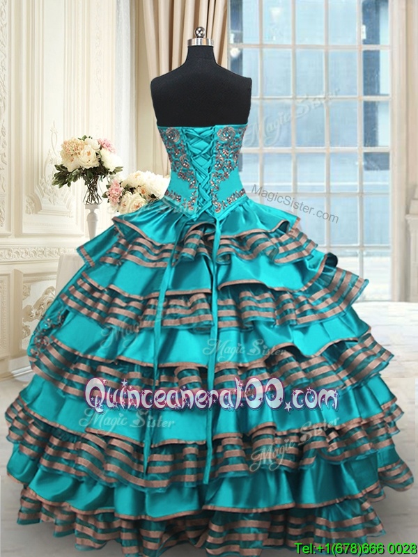 Deluxe Ruffled Aqua Blue Sleeveless Taffeta Lace Up Quinceanera Gowns forMilitary Ball and Sweet 16 and Quinceanera