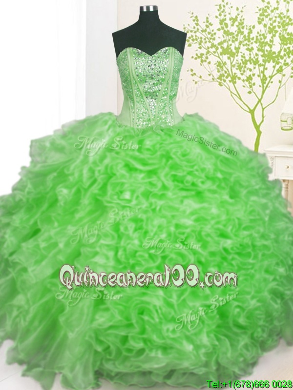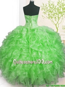 Deluxe Sleeveless Beading and Ruffles and Pick Ups Lace Up Quinceanera Dress