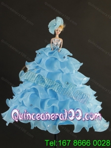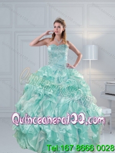 Detachable 2015 Fashionable Beading and Ruffles Aqual Blue Quince Dresses