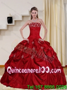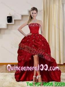 Detachable 2015 Floor Length Strapless Sweet 16 Dress with Embroidery and Pick Ups