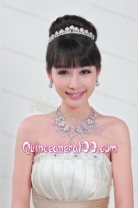 Beautiful Crown with Jewelry Set Including Necklace And Earrings