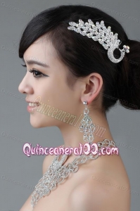 Shinning Crystal Crown with Necklace and Earings Jewelry Set