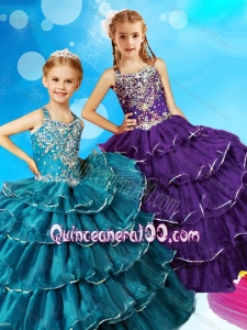 Discount Beaded and Ruffled Layers Little Girl Pageant Dress with Straps