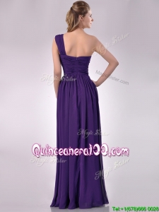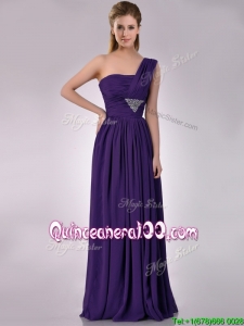Discount Empire Beaded and Ruched Dark Purple Dama Dress with One Shoulder