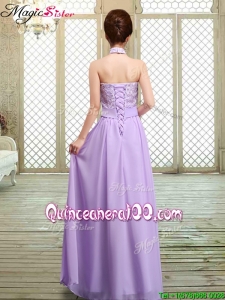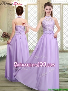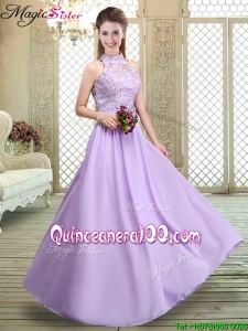 Discount High Neck Lace Lavender Bridesmaid Dresses