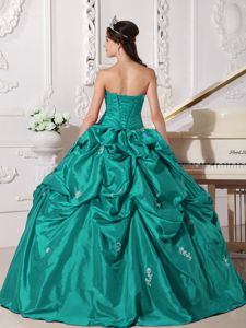 Discounted Turquoise Quinceanera Dress with Pick Ups and Appliques