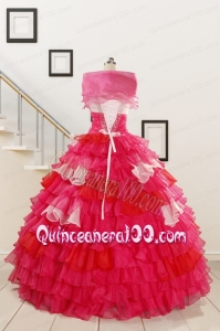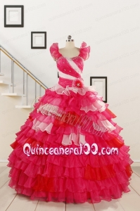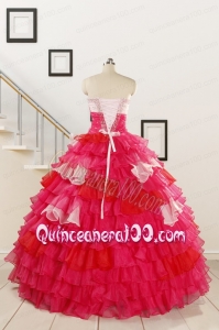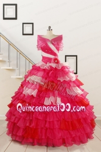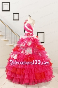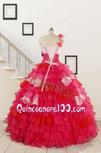 2015 Multi Color Hand Made FlowerQuinceanera Dress with One Shoulder