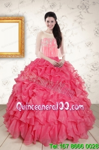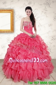 Perfect Beading and Ruffles Hot Pink Quinceanera Dresses with Strapless