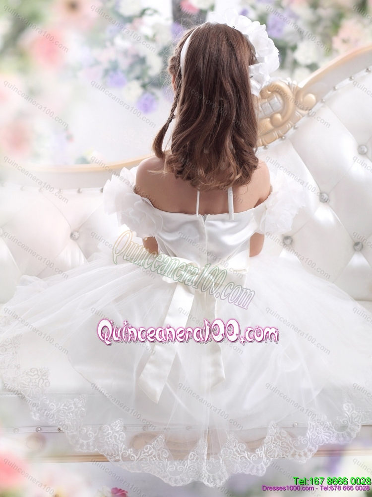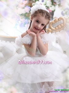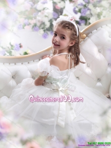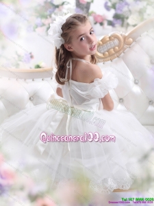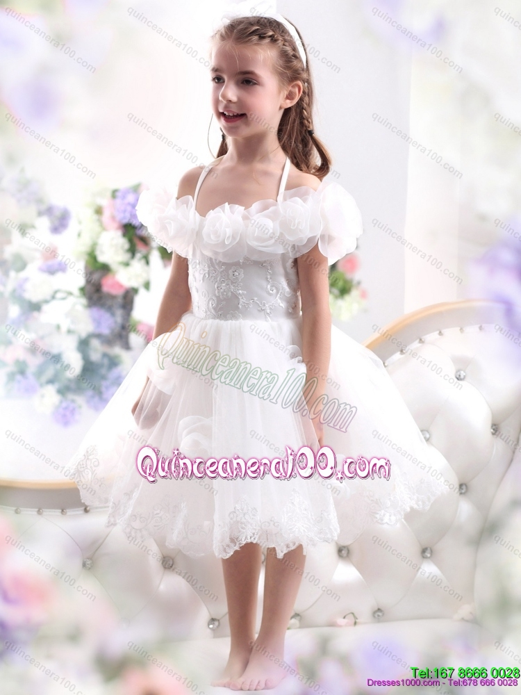 2015 White Halter Top Kid Pageant Dresses with Hand Made Flower