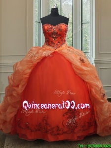 Perfect Embroideried and Bubble Orange Quinceanera Dress with Brush Train