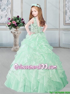 New Style Beaded Bodice Apple Green Lace Up Little Girl Pageant Dress in Organza