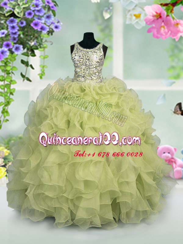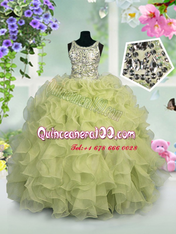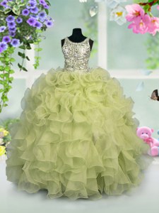Fantastic Scoop Sleeveless Little Girl Pageant Dress Floor Length Ruffles and Sequins Light Yellow Organza