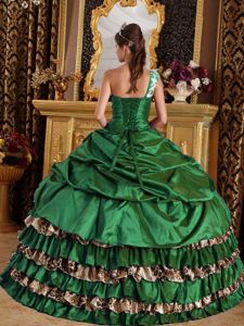 Green One Shoulder Appliques Dresses for Sweet 16 with Leopard