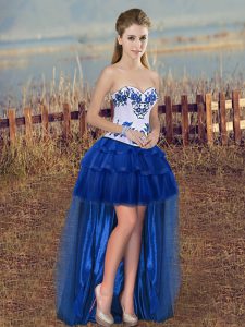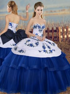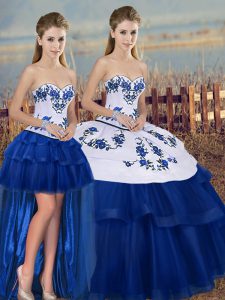 Royal Blue Three Pieces Embroidery and Bowknot Quince Ball Gowns Lace Up Tulle Sleeveless Floor Length