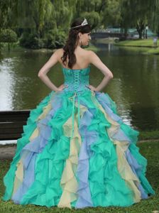 Colorful Ruched Quinceanera Dresses with Ruffles and Appliques