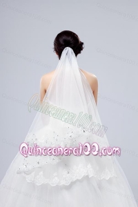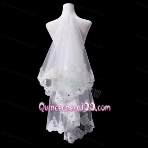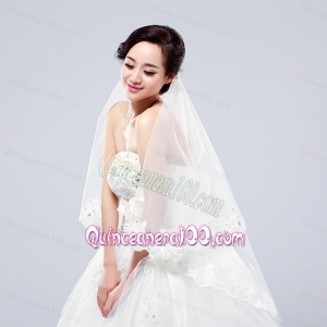 2014 Two-Tier Tulle Lace Appliques Edge Bridal Veils