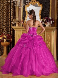 Dropped Quinces Gown with Appliques with Beading in Fuchsia