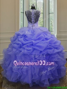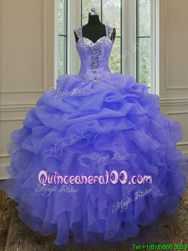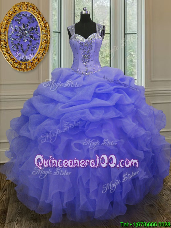 Dynamic Purple Straps Neckline Beading and Ruffles Quinceanera Gowns Sleeveless Zipper