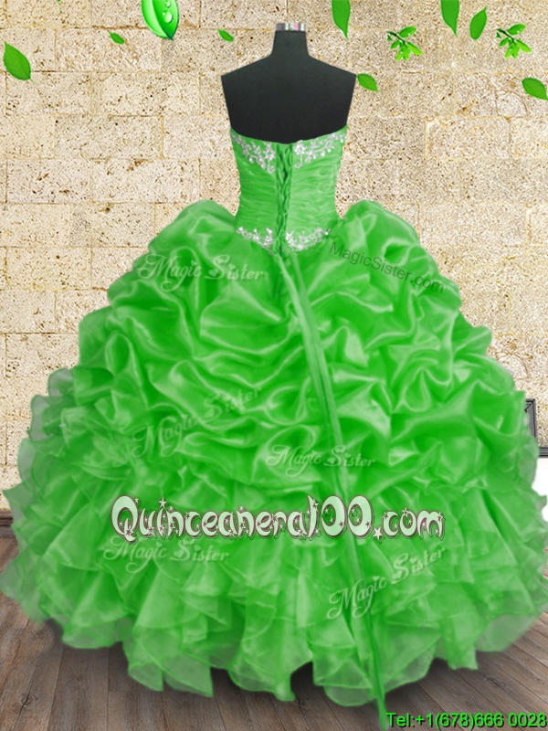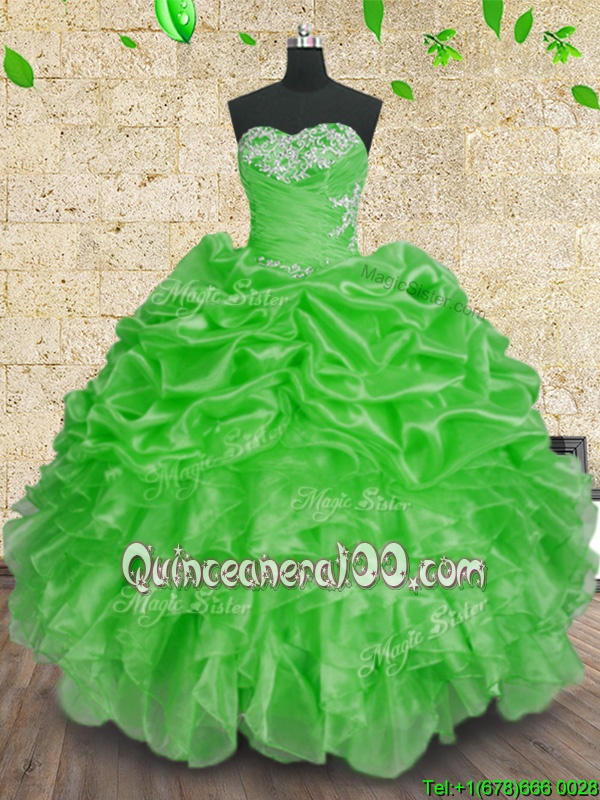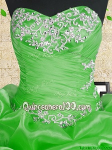 Dynamic Spring and Summer and Fall and Winter Organza Sleeveless Floor Length Sweet 16 Dress andBeading and Appliques and Ruffles and Ruching