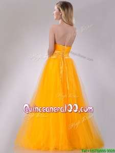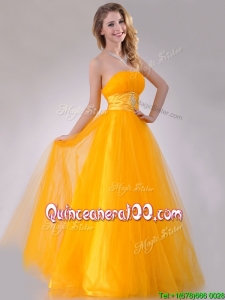 Elegant A Line Beaded Tulle Gold Dama Dress with Lace Up