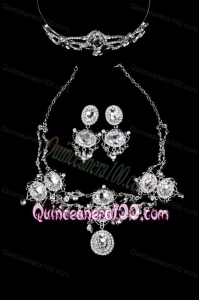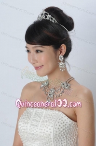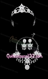 Alloy With Luxurious Rhinestone Jewelry Set Including Crown Necklace And Earrings