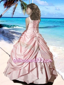 Elegant Ball Gown Straps Little Girl Pageant Dress with Ruching Appliques in Pink