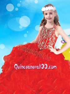 Elegant Beaded and Ruffled Red Mini Quinceanera Dress with Square