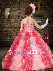 Elegant Blue Halter Top Ball Gown Mini Quinceanera Dresses with Beading for 2016