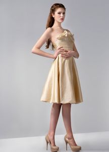 Elegant Empire Strapless Knee-length Gold Dama Dress with RuchesElegant Empire Strapless Knee-length Gold Dama Dress with Ruches
