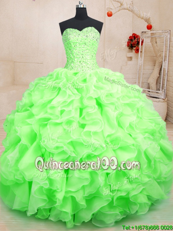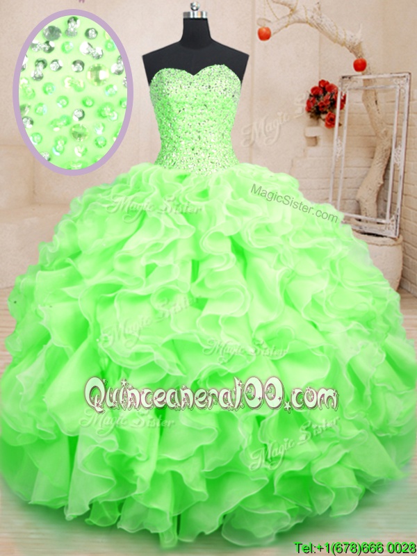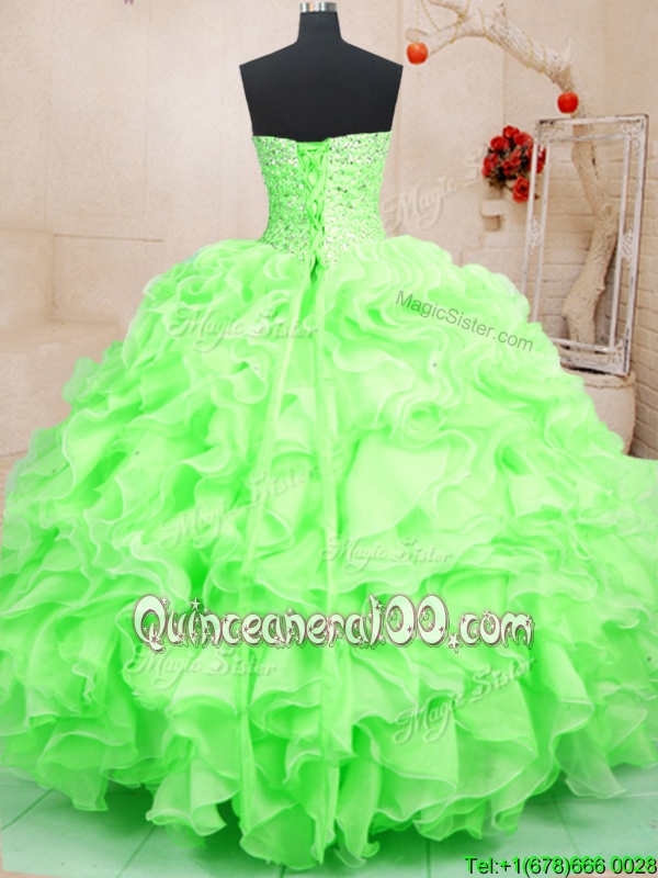 Elegant Floor Length Spring Green Sweet 16 Dress Sweetheart Sleeveless Lace Up