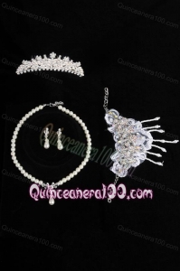 Elegant Ivory Pearl Artistic Necklace Bracele And Tiara