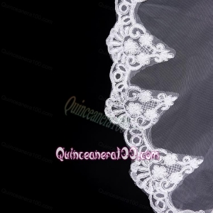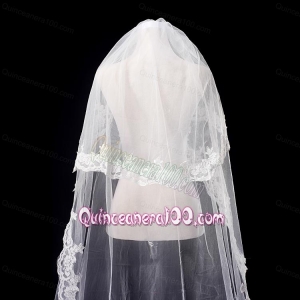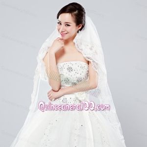 Elegant One-Tier Oval Elbow Veils with Lace Edge
