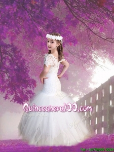 Elegant Scoop Short Sleeves Mermaid Flower Girl Dress with Lace