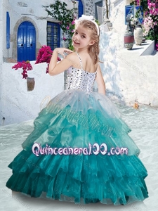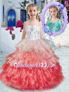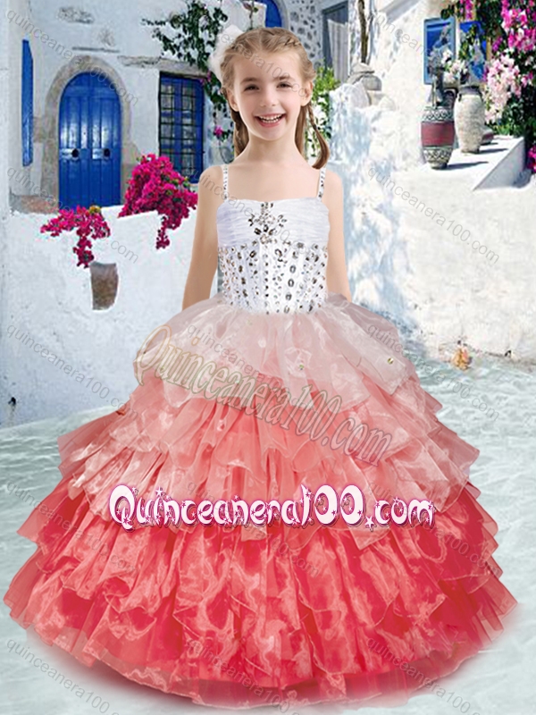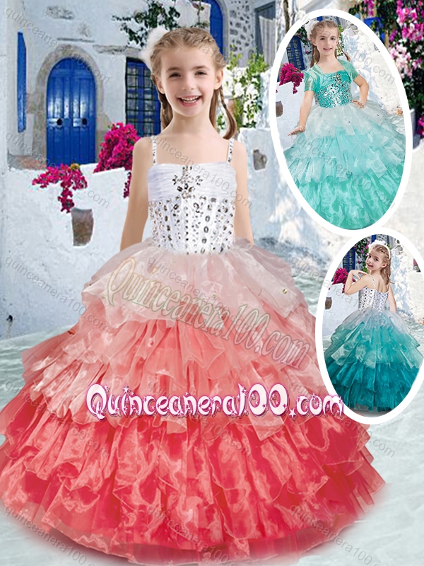Elegant Spaghetti Straps Little Girl Pageant Dresses with Ruffled Layers and Beading