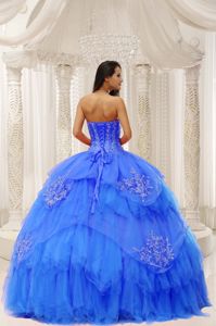 Embroidery Multi-tiered Aqua Blue Quinces Dresses Custom MadeEmbroidery Multi-tiered Aqua Blue Quinces Dresses Custom Made