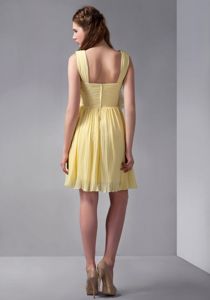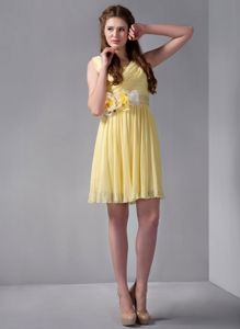 Empire Straps Mini-length Yellow Dama Dress with Hand Made FlowerEmpire Straps Mini-length Yellow Dama Dress with Hand Made Flower