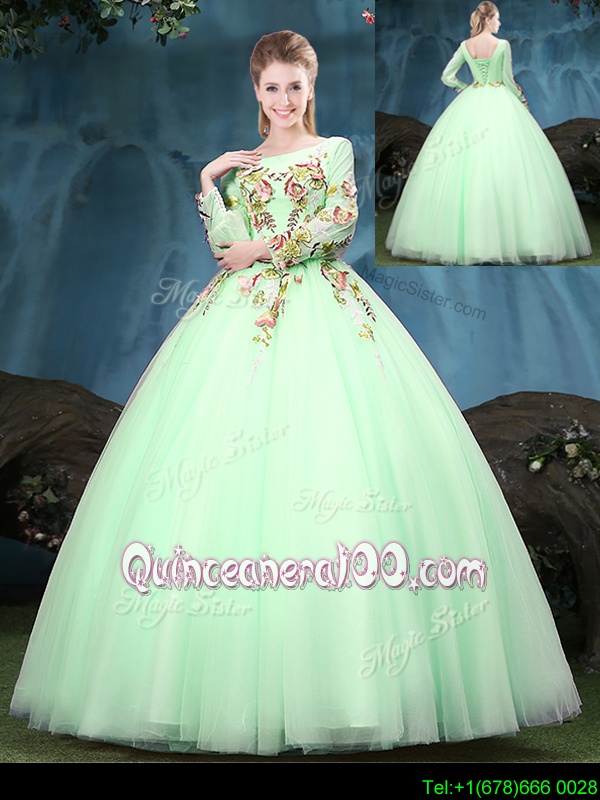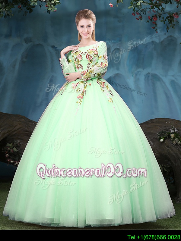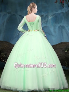 Enchanting Scoop Spring and Summer and Fall and Winter Tulle Long Sleeves Floor Length Quinceanera Gowns andAppliques
