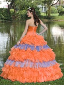 Enshrinement Multi-tiered Beading and Sequins Quinceanera Dress in OrangeEnshrinement Multi-tiered Beading and Sequins Quinceanera Dress in Orange