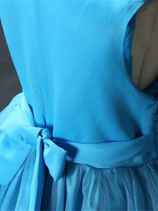Excellent Scoop Sleeveless Kids Pageant Dress Knee Length Sequins and Hand Made Flower Baby Blue Tulle
