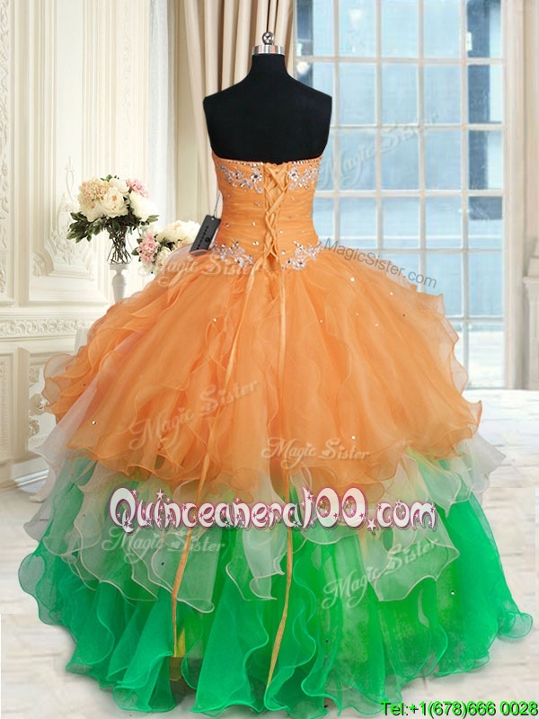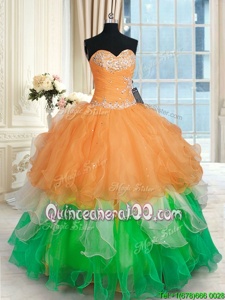 Exceptional Multi-color Ball Gowns Organza Sweetheart Sleeveless Beading and Ruffles Floor Length Lace Up Sweet 16 Dresses