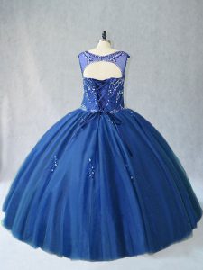 Exquisite Blue Scoop Neckline Beading 15 Quinceanera Dress Sleeveless Lace Up