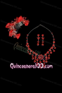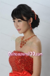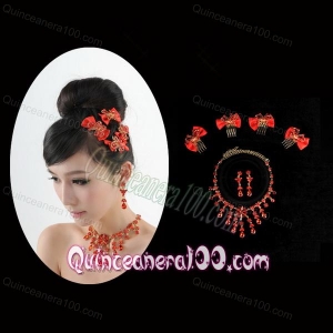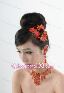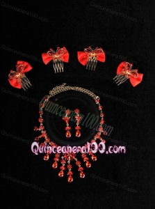 Exquisite Red Intensive Jewelry Set Necklace And Head Bowknot