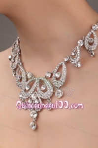 Gorgeous Alloy With Rhinestone Ladies Necklace and Headpiece