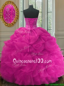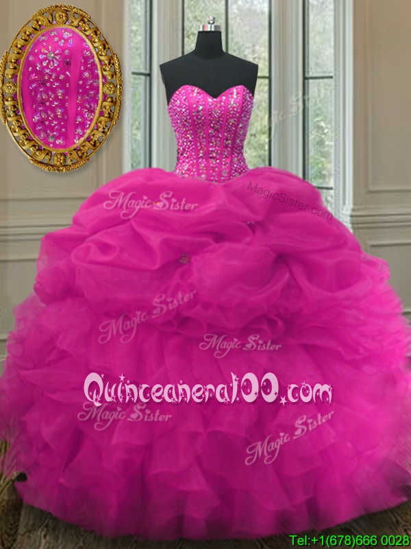 Extravagant Spring and Summer and Fall and Winter Organza Sleeveless Floor Length Quince Ball Gowns andBeading and Ruffles and Pick Ups