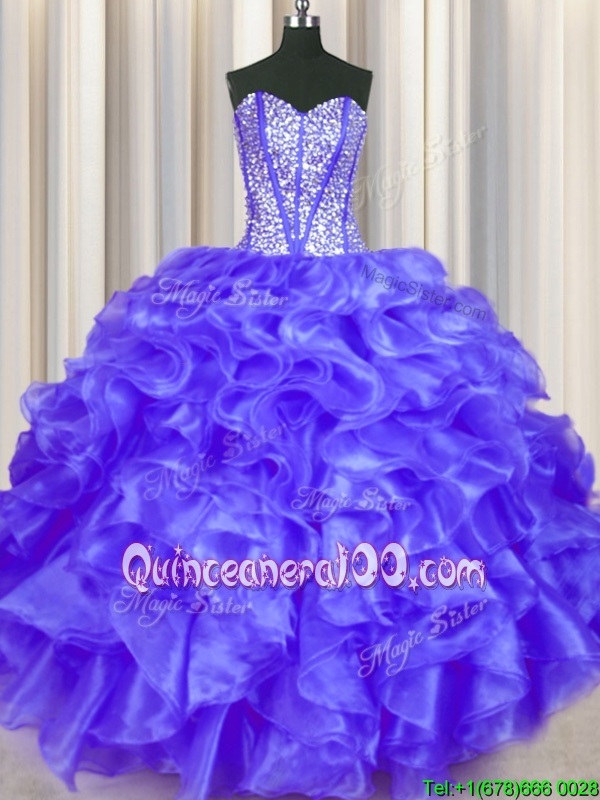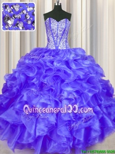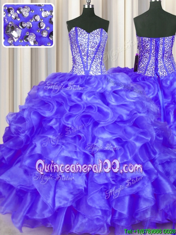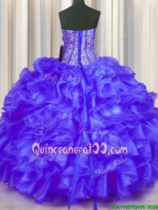 Extravagant Spring and Summer and Fall and Winter Organza Sleeveless Floor Length Quince Ball Gowns andBeading and Ruffles