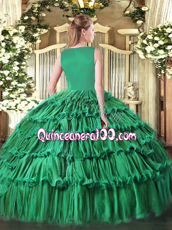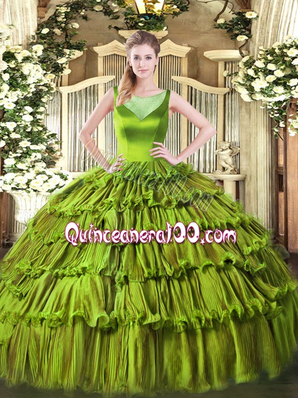 Fabulous Ball Gowns Quinceanera Gowns Olive Green Scoop Organza Sleeveless Floor Length Side Zipper