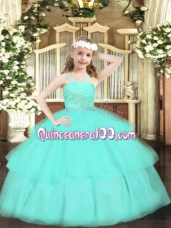 Fancy Floor Length Apple Green Girls Pageant Dresses Straps Sleeveless Zipper