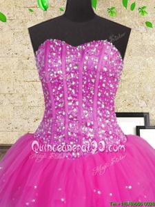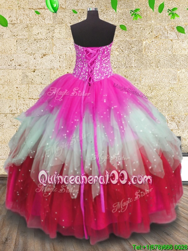 Fancy Multi-color Lace Up Ball Gown Prom Dress Beading and Ruffles and Ruffled Layers Sleeveless Floor Length