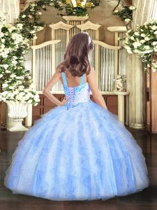 Fancy Straps Sleeveless Kids Formal Wear Floor Length Beading and Ruffles Lavender Organza
